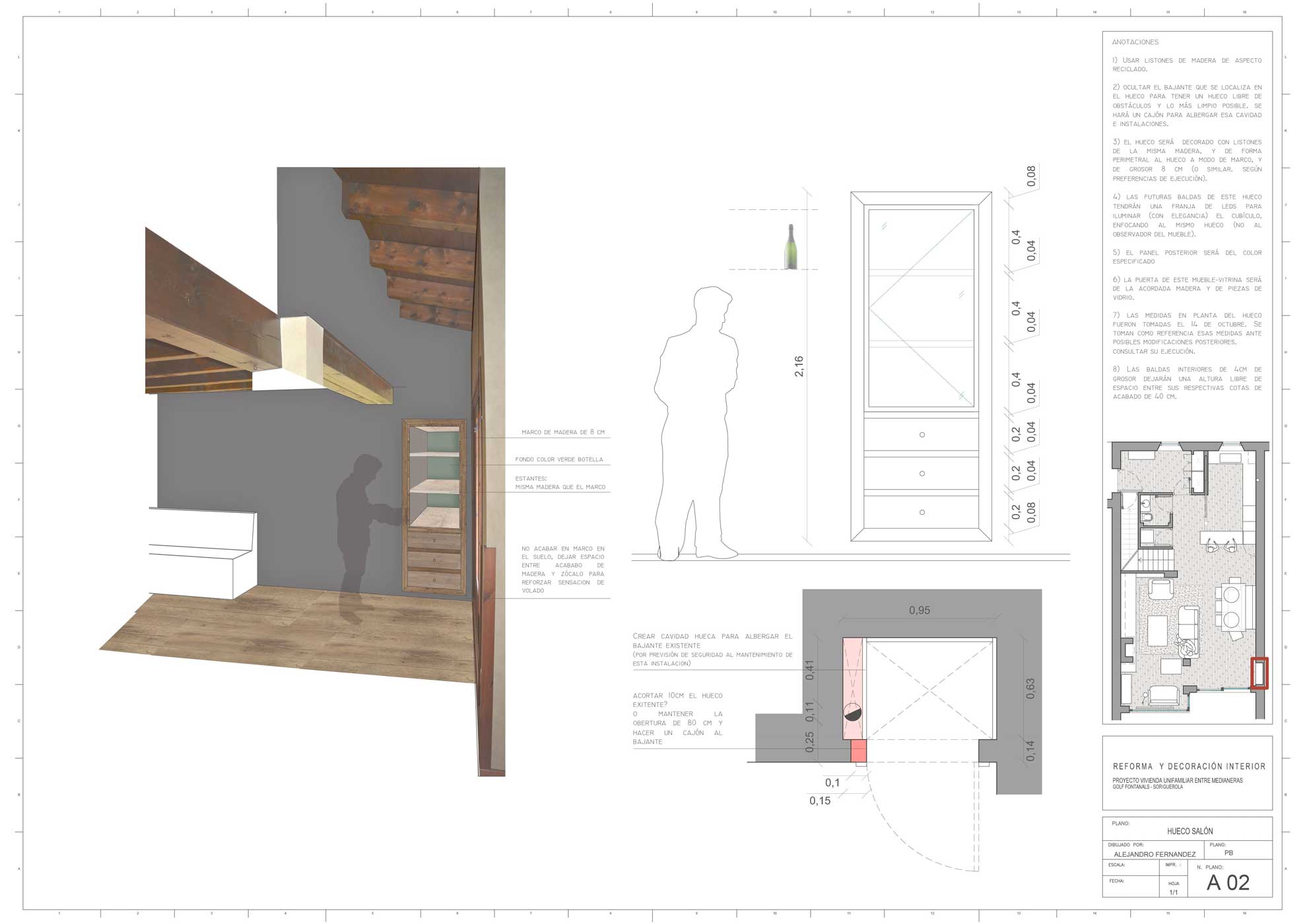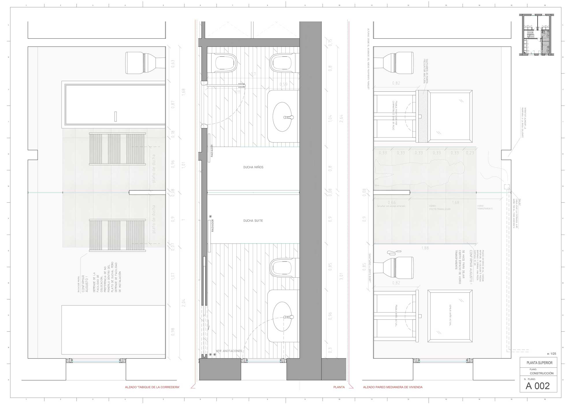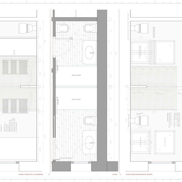 El cliente solicitó la mejora de la vivienda existente, incluyendo en el proyecto la renovación de la zona de baños y un estudio de las instalaciones -con sus consiguientes mediciones y planos.